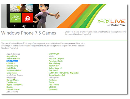 Nuevos juegos optimizados para Windows Phone 7.5 y soporte Xbox Live