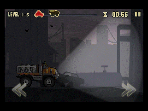 El manejo del camión es muy simple debido a que se trata de un juego de plataformas. Tiene dos controles táctiles en cada extremo de la pantalla para acelerar y frenar. Y mediante la inclinación del dispositivo podremos nivelar el vehículo. Nuestra agilidad con los dedos y la habilidad cambiando la orientación de la pantalla nos hará pasar un buen rato de acción al volante.