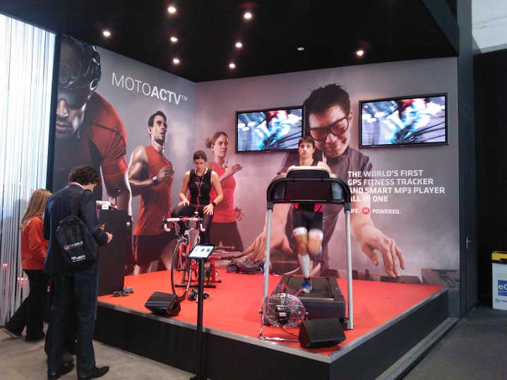 • Motorola trajo novedades como el tablet XOOM 2 o el XOOM 2 Media Edition, una variante en 7″ con el mismo hardware. Pero nos interesó mucho su MOTOACTV, preparado para los Androides más deportistas. Se trata de un dispositivo que puede ir en la muñeca o cogido a la camiseta mientras corremos. Dispone de Android, pero con una capa muy personalizada por Motorola. Se mueve con mucha fluidez por los menús y el táctil responde perfectamente. Dispone de GPS para hacer seguimiento de todas nuestras rutas de montañismo y guardar nuestros datos, y Bluetooth para sincronizarlo con nuestro Android y a través de la aplicación para smartphone, podemos desviar llamadas y sms al MOTOACTV. Y lo mejor de todo es que cuando volvamos a casa de nuestra sesión de deporte al aire libre, podemos conectar el MOTOACTV a nuestro PC y descargar todos los datos en la aplicación de escritorio y así tener un histórico de nuestra progresión.
