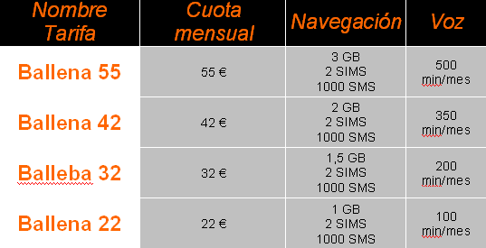 Muy difícil se lo pone al resto de operadores, pues el cuarteto de tarifas de las que se componela Ballena, tiene precios realmente asequibles y adaptables a diferentes perfiles de usuarios: