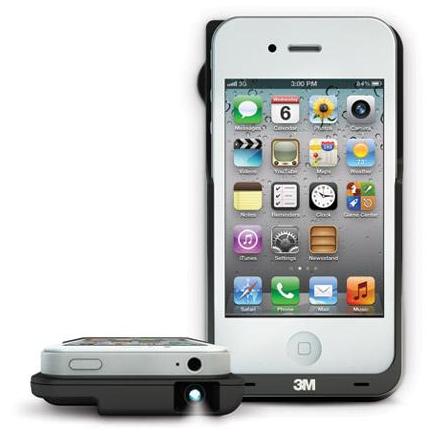 Os traemos un nuevo accesorio para vuestros iPhone 4 y 4S, de la mano de 3M, nos presentan este proyector LED, pensado para el mundo profesional, para presentaciones de vídeos y fotos fuera de la oficina. Podemos enseñar presentaciones tanto en una pared, como en un techo y trata de una carcasa que incorpora un proyector DLP capaz de proyectar cualquier contenido con una ampliación de entre 6 y 6o pulgadas.