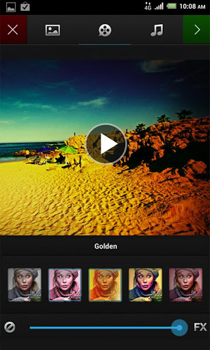 En cuanto a las opciones que nos da son también muy parecidas, pues nos permite añadir hasta 10 filtros personalizables a nuestros vídeos. Y además nos permite añadirle música para ponerles algo de banda sonora, pues se puede elegir hasta 16 canciones para hacerlo.