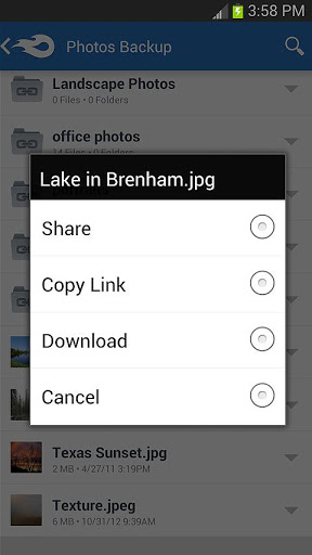 La aplicación para android funciona al igual que las demás, se integra con el sistema una vez introduzcamos los datos de nuestra cuenta y nos permite desde la opción de compartir, enviar el fichero a nuestro espacio en la nube a través de la conexión a internet de nuestro smartphone o tablet android.