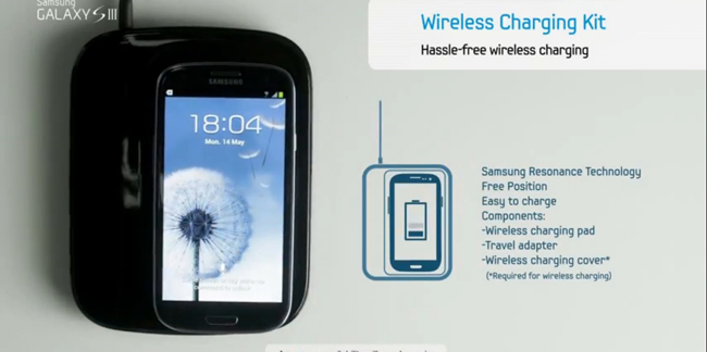 Esto se haría a través de un accesorio que no vendría con el pack de inicio del terminal, sino que habría que comprar aparte. Destacar que el Samsung Galaxy S3 debería contar con esta opción de carga, pero no ha habido muchos movimientos por parte de la compañía para explotar esta característica, la posibilidad pasaría por utilizar una placa trasera (SGS3).
