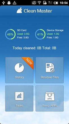 - Task Killer: Clean Master incorpora un modo Task Killer que nos ahorrará instalar otra aplicación adicional para tal tarea, cierra las aplicaciones que no queramos que estén en ejecución y libera memoria RAM.