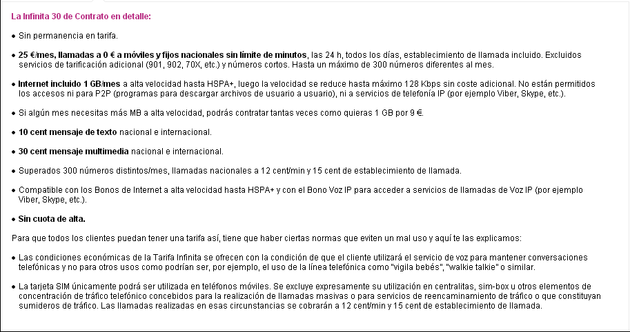 Las condiciones son las mismas, 300 destinos máximo al mes, 1 GB a máxima velocidad y después bajaría a 128Kbps. Si quieres consultar sobre las normas de uso razonable expuestas por Yoigo puedes entrar en su web www.yoigo.com o bien ver el cuadro que les dejamos a continuación.