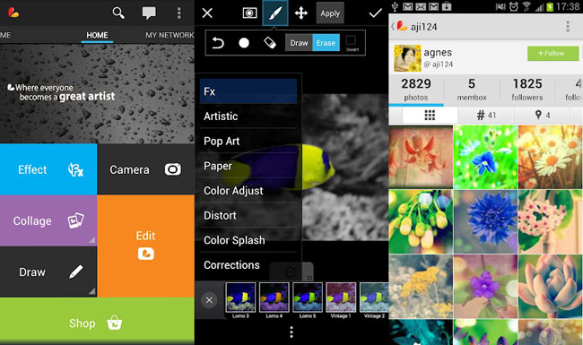 PicsArt es el editor de fotos gratuito de Android más popular. Con más de 60 millones de descargas, cuenta con su propia red social para artistas fotográficos, donde también puedes estar tú. La puedes descargar desde aquí.