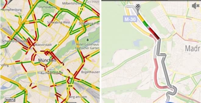 Sin embargo, el apartado más novedoso de esta actualización nos llega con el tráfico en tiempo real. A partir de ahora, las calles aparecen en tres colores: verde, amarillo o rojo, según la fluidez de tráfico que haya en ese preciso momento.