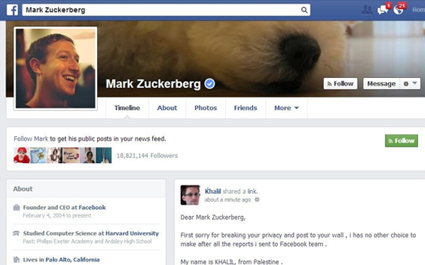 Este hacker de origen palestino, descubrió una brecha de seguridad en la red social más popular del mundo. Siguiendo los cauces legales, escribió a los responsables de seguridad de Facebook explicando su descubrimiento, aunque al parecer, estos no le hicieron caso. Al ver que no recibía ningún tipo de respuesta, pasó a la acción, y lo que hizo fue hacer una demostración de lo que se podía hacer en el muro donde más visible podía ser, en el del creador de la red social, siempre desde el respeto y disculpándose por invadir la privacidad de Mark Zuckerberg.