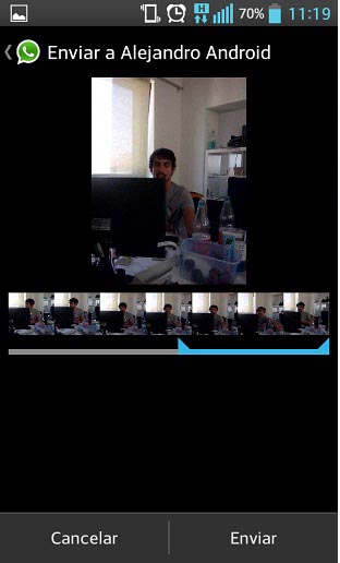 Hasta ahora teníamos dos opciones para enviar un video por Whatsapp: o bien elegir uno de la galería o bien grabarlo directamente desde la aplicación. Pues ahora tendremos una tercera opción que será editar y lo que podremos hacer será básicamente editar el tiempo de duración del video para ajustarlo a lo que nos permite la aplicación enviar.