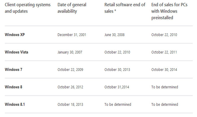 Aunque a algunos les pueda parecer que el periodo de actividad de esta versión de Windows ha sido corto, cumple con el ciclo habitual de los sistemas operativos de Microsoft. La versión anterior, denominada como Windows Vista, también tuvo un periodo de vigencia de 3 años, entre enero de 2007 y octubre de 2010