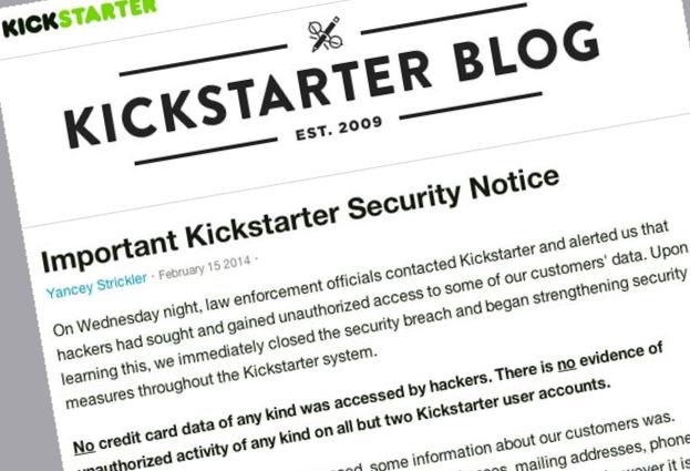El CEO de Kickstarter, Yancey Strickler, quiso aclarar lo sucedido en el blog de la plataforma: “Los hackers no accedieron a datos de las tarjetas de crédito de ninguna clase. Tampoco hay evidencia de actividad no autorizada de ningún tipo”. Aunque no han accedido a la información de las tarjetas de crédito como informa el CEO, si lo han hecho a los nombres de los usuarios, correos electrónicos, direcciones postales, números de teléfono y contraseñas.