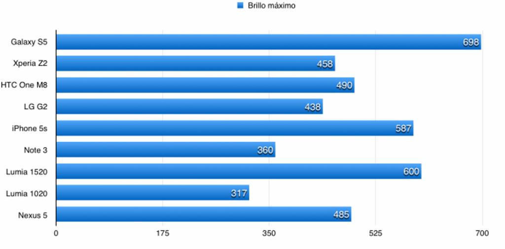 Otro dato a tener en cuenta en cuanto al brillo de nuestro terminal es que normalmente los smartphones suelen obtener mayor número de “nits”, o lo que es lo mismo, mayor brillo de pantalla, cuando tenemos el ajuste de brillo en automático que si lo tenemos en manual. Por ejemplo, el Galaxy S5 llega casi a los 700 “nits” en modo automático mientras que en modo manual solo alcanza los 456 “nits”.