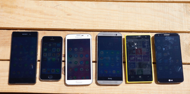 Teniendo en cuenta estos aspectos, se puede ver en la foto de la cabecera que ningún smartphone actual tiene buena respuesta en condiciones de luz solar, pero podemos ver que hay terminales como el S5, el M8 y el 5S que, gracias a su mayor brillo de pantalla y su gran contraste, permiten una mejor respuesta en estas situaciones.