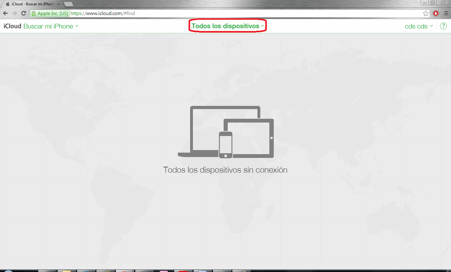 Cuando pulses, es posible que te pida de nuevo la contraseña de tu ID de Apple. Seguidamente empezará a cargar un mapa con la información de ubicación de tu dispositivo o bien si está apagado puede que te salga la siguiente pantalla: