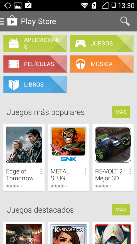 Tu nuevo Huawei Y530 dispone de Play Store, con todo su mundo de aplicaciones, películas y libros para que no te separes de él en ningún momento. Simplemente entra en la tienda de aplicaciones y navega por ella con soltura gracias a su sencillez o pulsa en la lupa y encuentra lo que quieras debido a su intuición en los resultados de búsqueda.