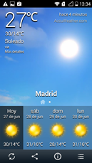 Consulta el tiempo siempre que quieras con el widget de tiempo que viene en tu pantalla, pero si quieres más información meteorológica puedes entrar en la aplicación de tiempo. En ella podrás consultar todo tipo de datos, desde la temperatura hasta datos de humedad, índices UV o velocidad del viento y sus ráfagas.