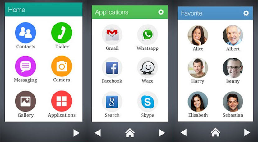 Con esta interfaz podemos encontrar un menú mucho más sencillo y un teclado amplio y grande para el teléfono además de fichas de contactos simplificadas para que sea más fácil navegar y contactar con la gente.