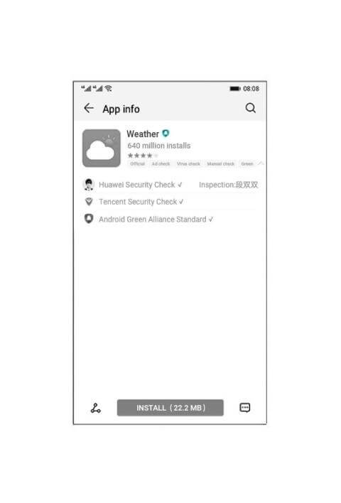 Tampoco hay grandes cambios en la información de cada una de las aplicaciones en lo que sería la propia tienda de aplicaciones de Huawei. Vemos el icono de la app como hasta ahora, capturas de pantalla de la misma y que tendría pasado el certificado de seguridad de Huawei, entre otras opciones. El peso de la aplicación, la posibilidad de compartirla o directamente la posibilidad de descargarla en el móvil.